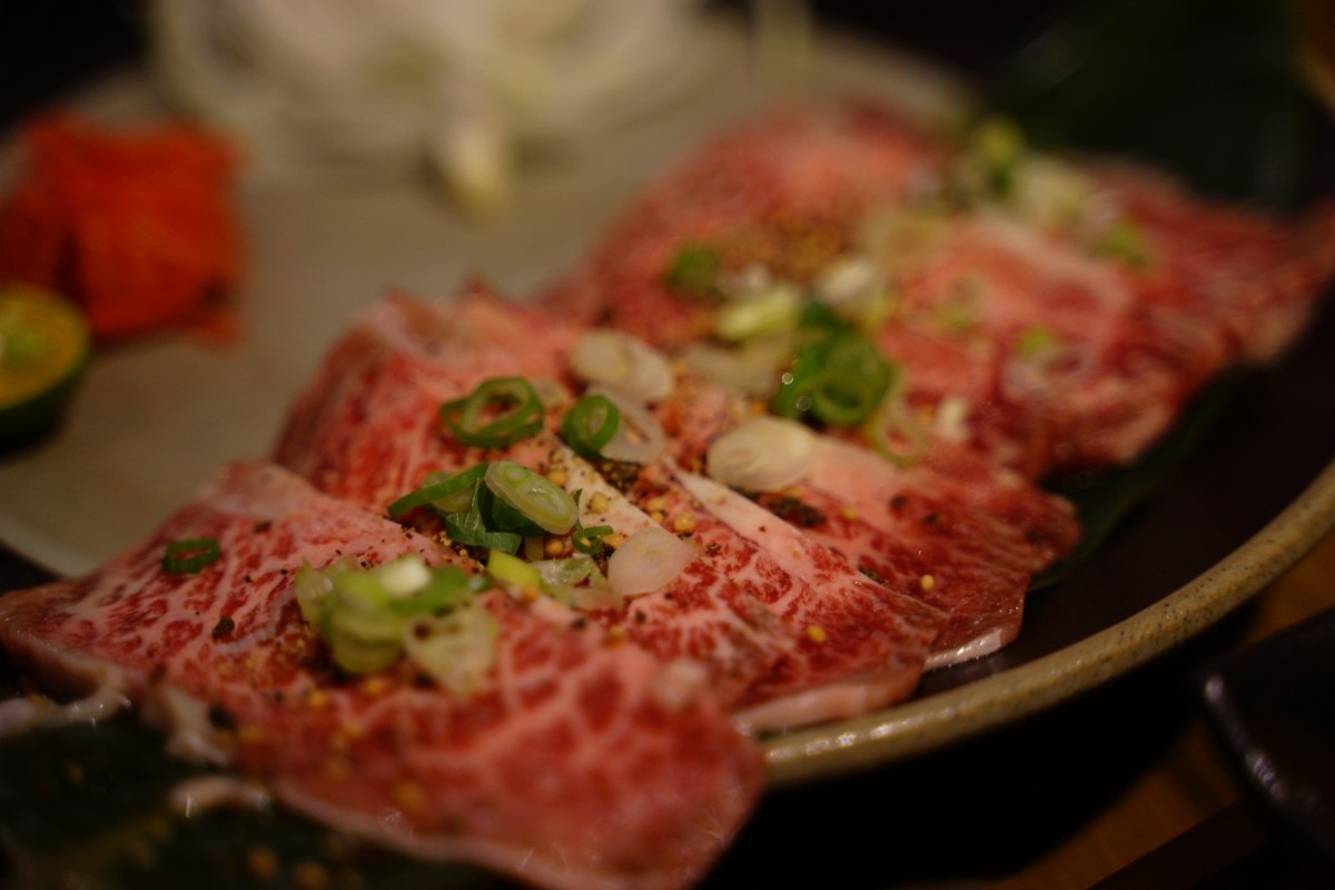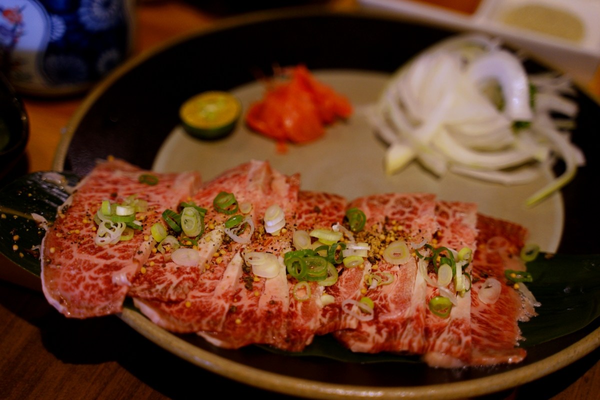 選用日本 A5 和牛,撒上胡椒鹽與蔥花,讓客人自行在鐵盤上面燒烤,兩面各烤 5-8 秒就差不多,但還是看每個人習慣吃的熟度,我覺得這樣熟度剛剛好,肉質柔軟又不至於太生,入口即化有肉香,真的很美味,也能品嘗到本身的肉汁,好的食材才敢這樣做(雙手比大拇指)。