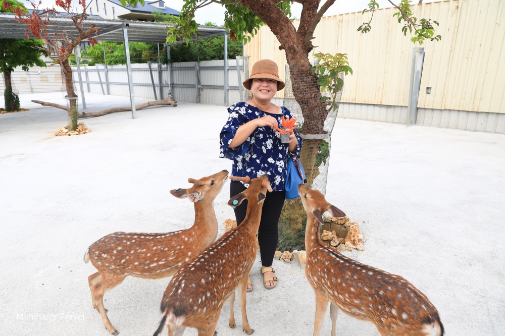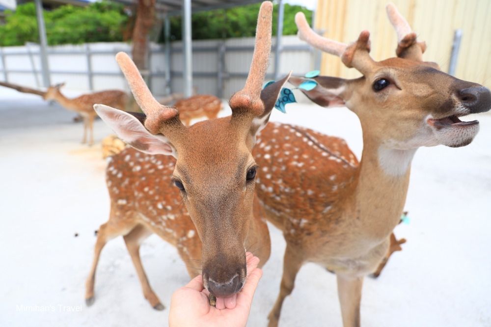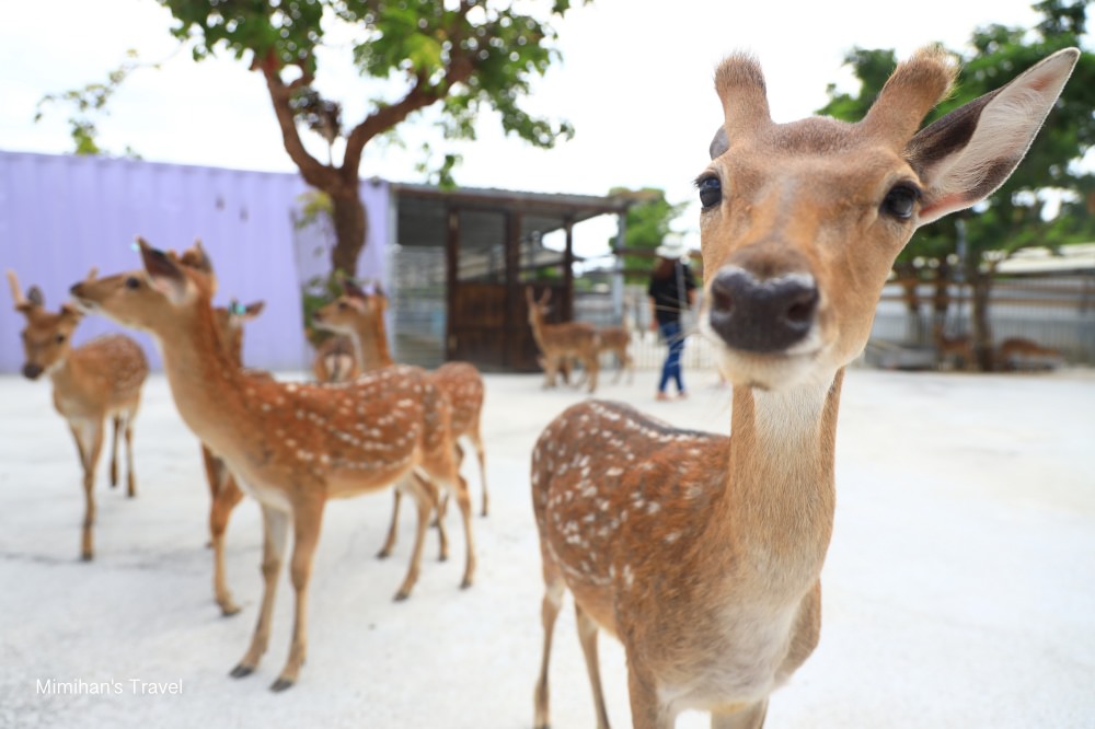一副很期待我們進去和他們玩耍的表情!比起墾丁鹿境,我覺得小琉球鹿粼梅花鹿園區的鹿比較親人,而且全程都會有工作人員陪同並導覽,聽著小鹿們的趣事也是相當有意思呢~