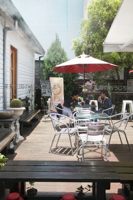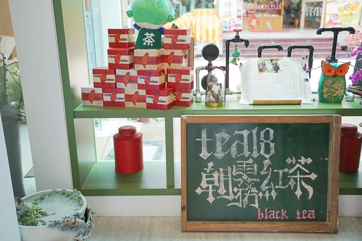 Tea 18 朝霧紅茶位在伊達邵的老街中,白色招牌搭著清新的綠色植栽,後方還有戶外休息座位區(有低消限制),走路累了也能在這裡喝杯好茶休息一下。