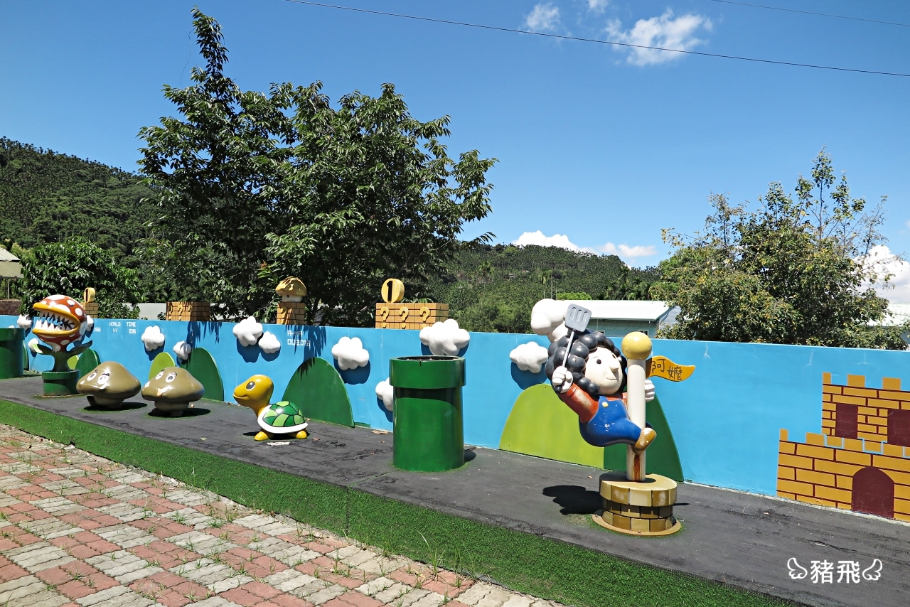 入口有大大的咖啡醬燻桶仔雞跟阿嬤的Q版告示板,提供戶外停車場。車停好後順著有著台語疊字的階梯,邊猜謎而上,就到了室內用餐座位區。這個看似簡單卻念不出來的台語,真是考倒我們了(笑)。特別要說一下,戶外特地打造了阿嬤版的超級瑪莉拍照區,超可愛的公仔讓來這裡的客人都忍不住跟公仔互動拍照,沒想到看似平凡的古早味餐廳也這有這麼有趣的拍照區耶。