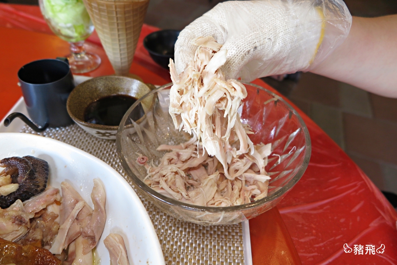 ▲光是要把雞肉拆解成這樣就要很費功夫了!要超級有耐心的人才做得來,所以我無法,只能在一旁等著吃(笑)。