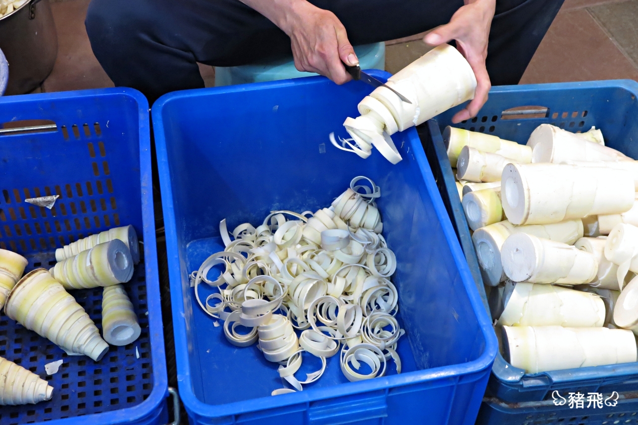 由於可以用來做筍子麵的部分只有竹筍最外圈部位,每次必需要手動削好幾箱的新鮮筍子才能成就份量不多的筍子麵,費時好工是大力推薦必吃的功夫菜。