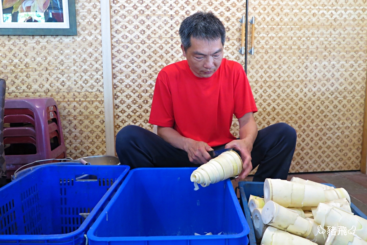 來的這天很幸運看到「招牌筍子麵」的製作,因為古坑得天獨厚的地理環境讓盛產的麻竹筍品質很好,除了一般煮湯、涼拌、熱炒之外,老闆很有創意地研發出完全不含澱粉的筍子麵。