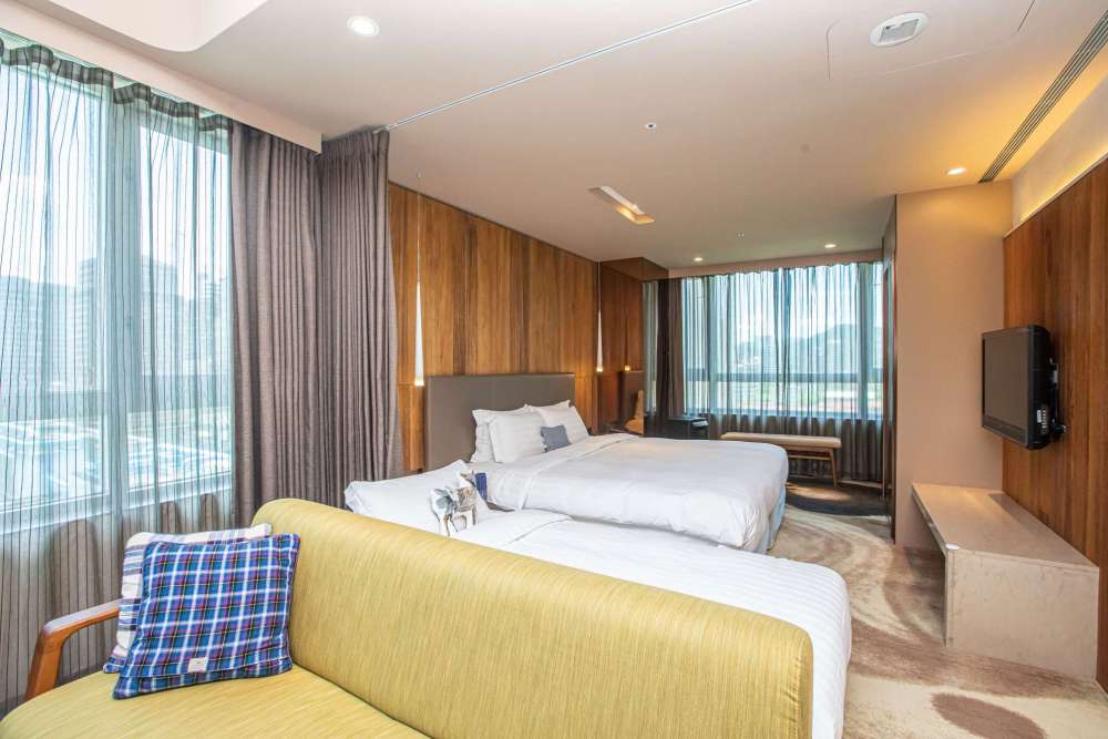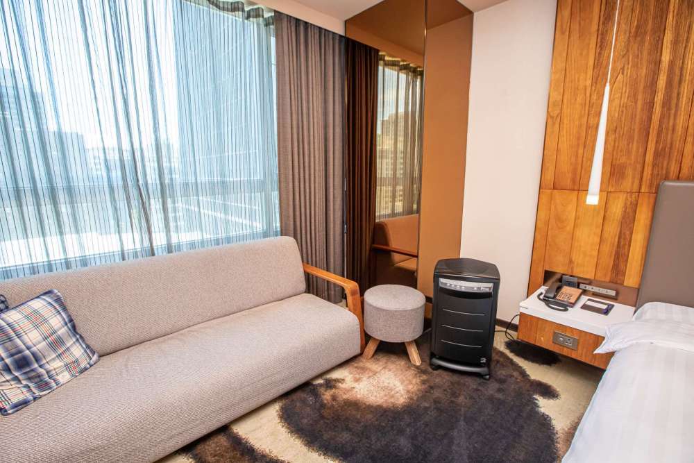 以寬敞度來講,純淨逸寬家庭套房就給人一種非常舒適的感受,再加上搭配空氣清淨機的運轉,即使位於水泥叢林裡,也不會給人一種沉悶感