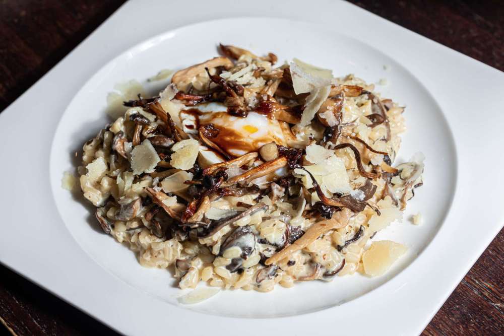 偏硬帶有嚼勁的燉飯,搭配水波蛋的濃郁黏稠感,還有用紅酒醋炒過的綜合野菇香氣與香脆軟嫩混搭口感,建議是可以搭杯紅酒或是黑啤酒都很棒(寫到這裡,真的好想來一杯)