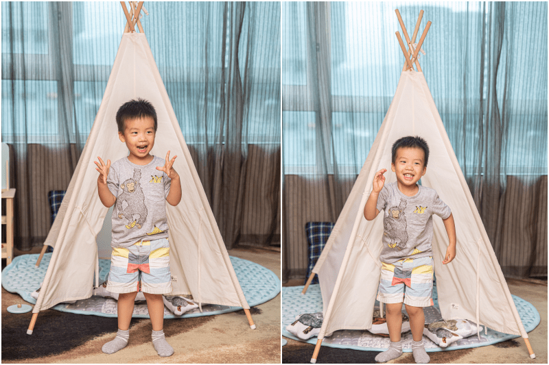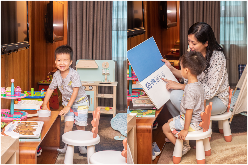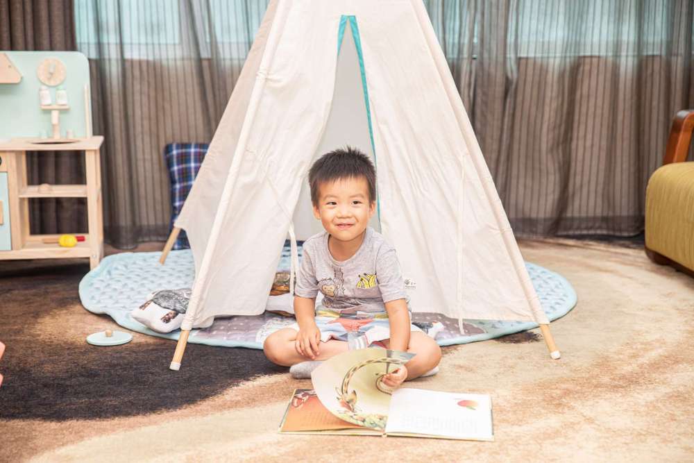 有好多溫溫喜歡的玩具,還有他超愛的帳篷跟小桌椅,再加上好多本繪本讀物,真的會讓人瘋狂啊!我們入住這一天,連電視都百分百沒開,光是一起讀書聊天玩樂就花上一整晚