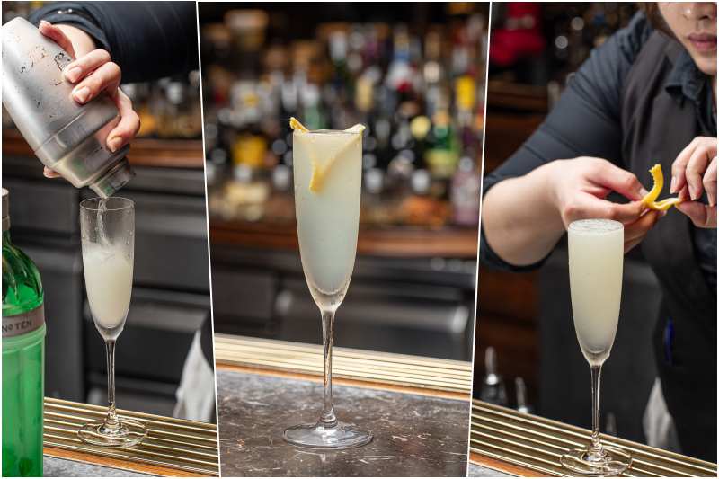 最後的壓軸,也是喝起來一開始沒有太多酒感,但最後卻是會直接爆開甚至讓人倒下的美味French 75 (400元,杯),這是一次大戰時很流行的調酒,其實很多人也對於French 75 跟75這兩種調酒(或是同一種)有不同解釋