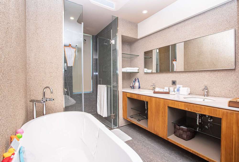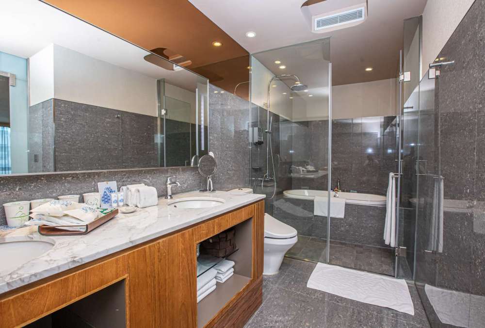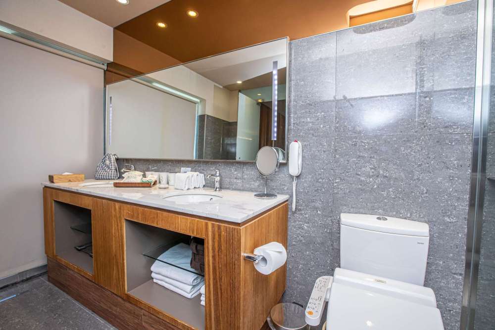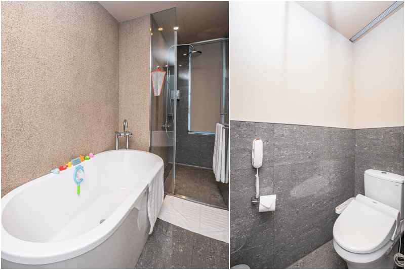 以衛浴而言,純淨逸寬家庭套房的配置其實沒有很大,不過該有的配置都有,包括免治馬桶也是標準配備
