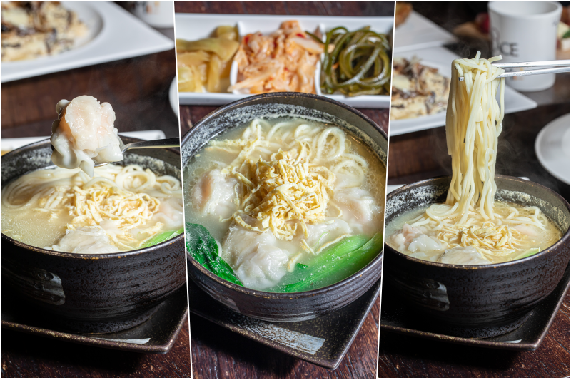 這是相當清爽但又不會索然無味的HOME特製手工蝦仁餛飩麵套餐(259元,份),超級大碗還搭配小菜(這個大人吃就好)