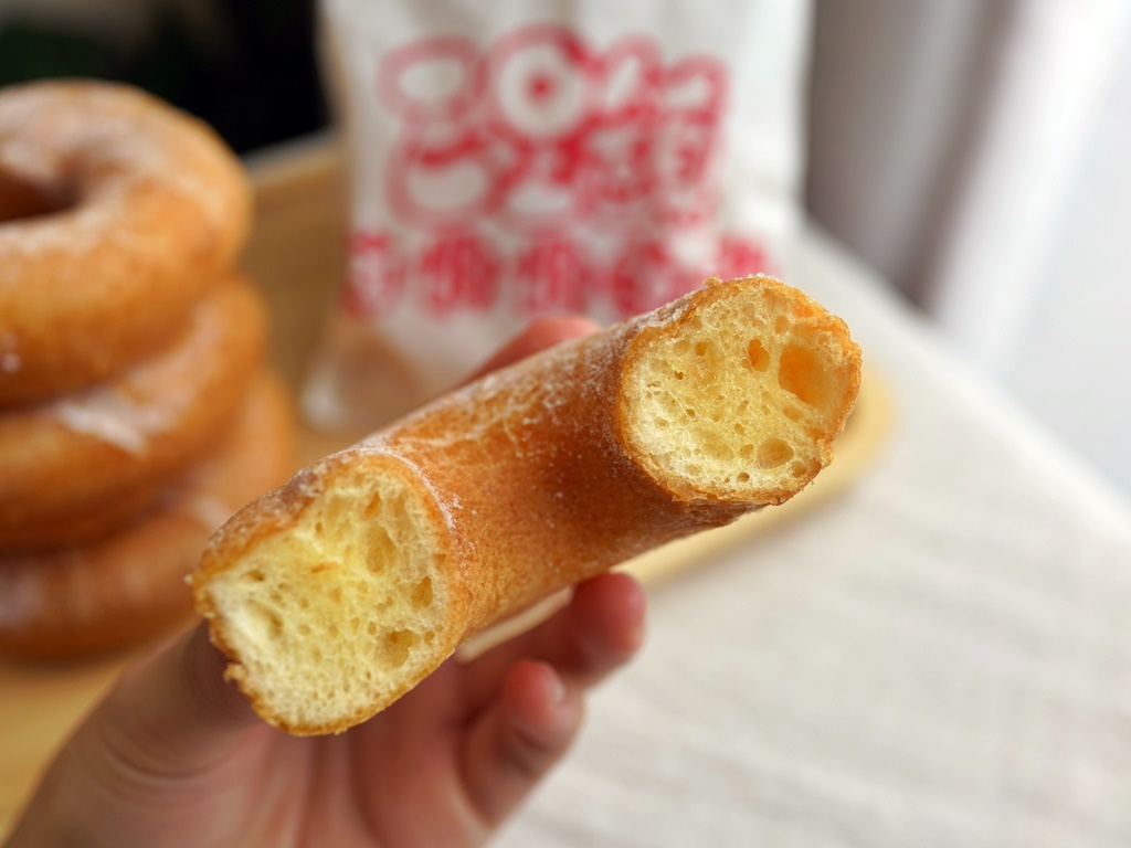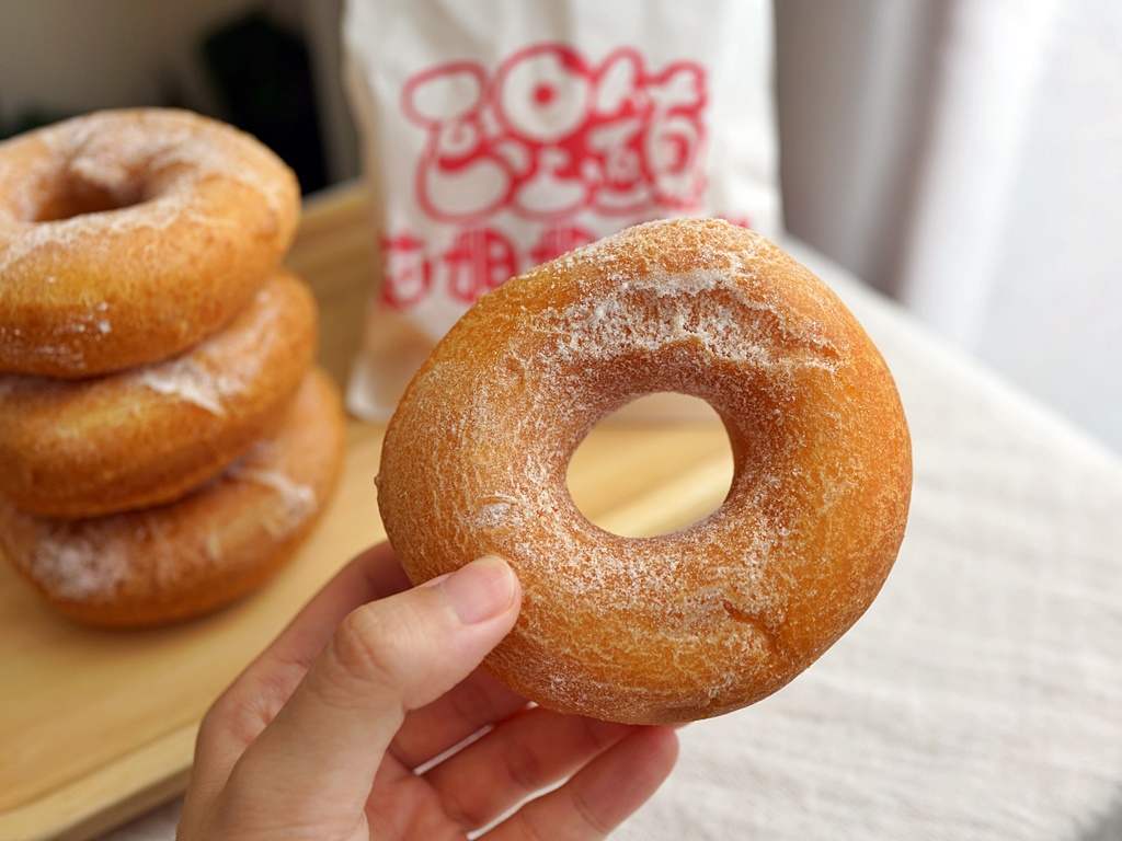 好喜歡小米甜甜圈外酥內Q的口感,最佳賞味時間是現炸出爐之後的十分鐘,趁熱吃最好吃,會越嚼越香!冷掉再吃油味會比較重,畢竟是炸物不宜久放,但還是保有獨特的香氣與咬勁,我是選半糖,糖粉沾一半不多不少剛剛好,小孩吃也OK~