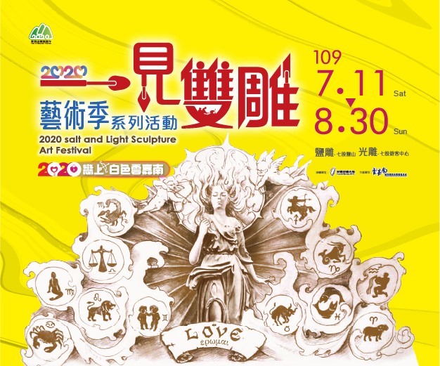 ▲2020一見雙雕從7/11(六)一直展演到8/30,每週六都還會有鹽鄉劇場表演,8/19(三)開始還推出情定心橋活動唷,雪白的七股鹽山彷彿下雪囉。