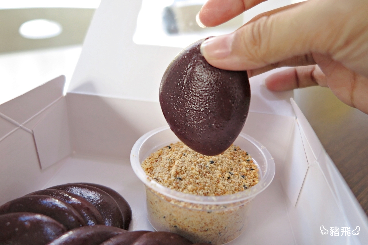 外觀長得好像融化的巧克力呀(笑)!其實它是週六限定口味的-紫米麻糬,用雲林在地產的紫米做成,吃起來的Q彈感比原味、粉色來的口感更好,細細品嚐還能感受到鮮明的紫米香氣。通常在中午前就被搶光了!