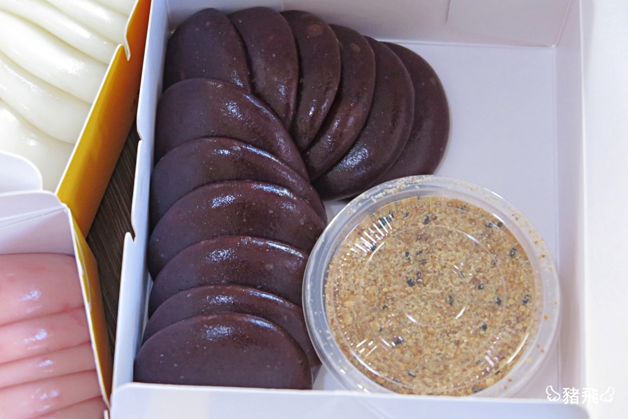 白色原味是經典熱銷麻糬!除了自己吃之外,拿來當伴手禮也是很棒的選擇。這裡的麻糬除了選用契作圓糯米以保持穩定品質,最大特色是米香奔放,口感Q彈,不沾手更不黏牙,難怪人氣長紅。