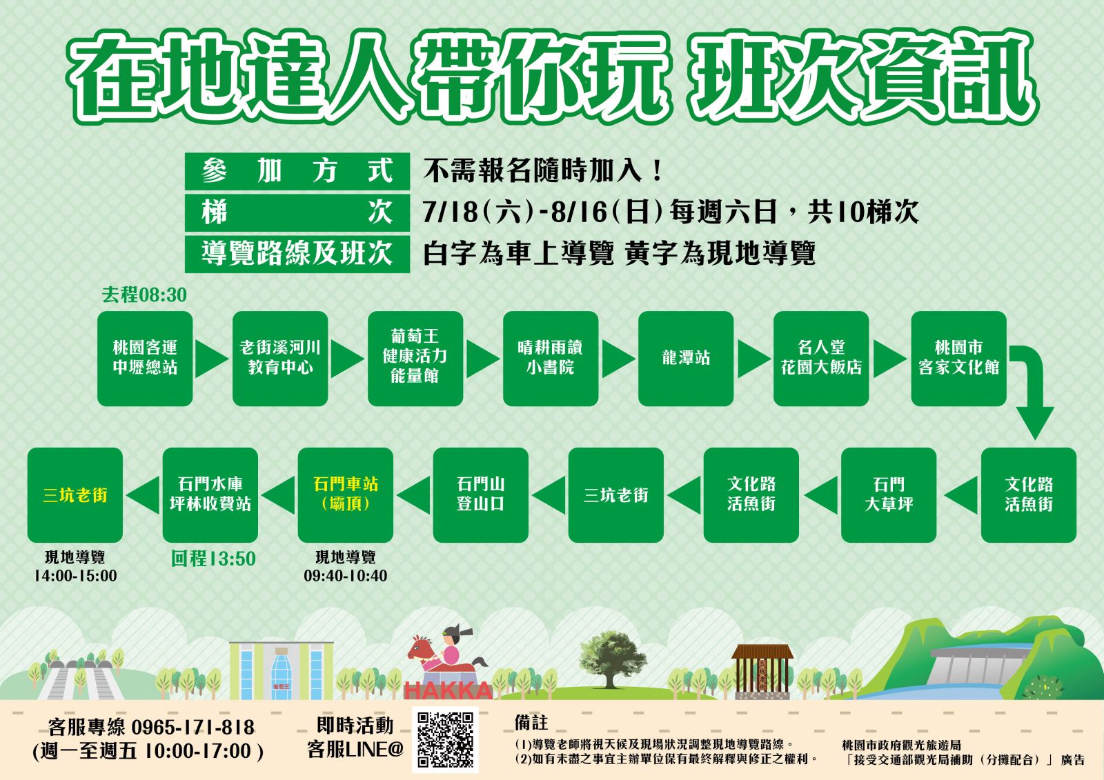 ▲▼桃園台灣好行石門水庫線(台灣好行503)路線圖,桃園台灣好行每條路線都會有代表色,像這次要搭乘的石門水庫線就是綠色,石門水庫線是從中壢總站為起點站,首班為8:30分發車,行經龍潭、三坑老街、石門水庫,沿路都可以下車運動,像是在龍潭大池體驗划船趣、在三坑老街騎單車暢遊鄉間小路,在登上石門山登上一覽石門水庫湖光山色,在石門水庫園區內可以步行健走,在石門車站旁的嵩台爬上至高點,可以俯瞰溢洪道和大壩,另外這條路線沿線還有許多桃園景點,值得一提的就是這次新增了名人堂花園大飯店,網路聲量很高的人氣景點,搭台灣好行503就能輕鬆插旗,這條路線安棑假日出遊桃園一日遊或桃園二日遊都很可以唷