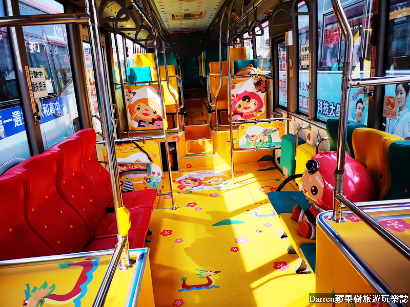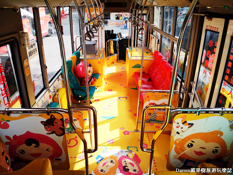 ▲▼台灣好行503石門水庫線彩繪車,車內有桃園市吉祥物ㄚ桃、園哥大型公仔陪你遊山玩水,彩繪車內設計也超級可愛會讓人想要拍照打卡,在台灣好行503車上也有提供Wifi服務,真得非常大心啊