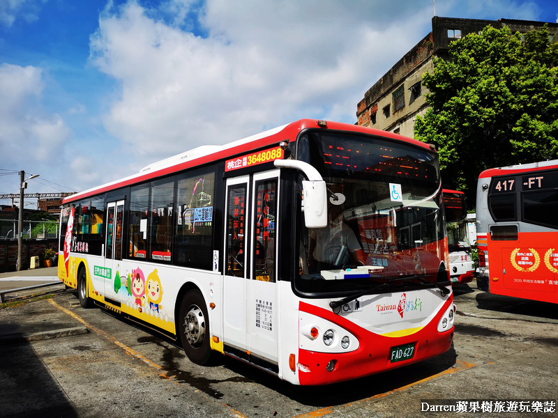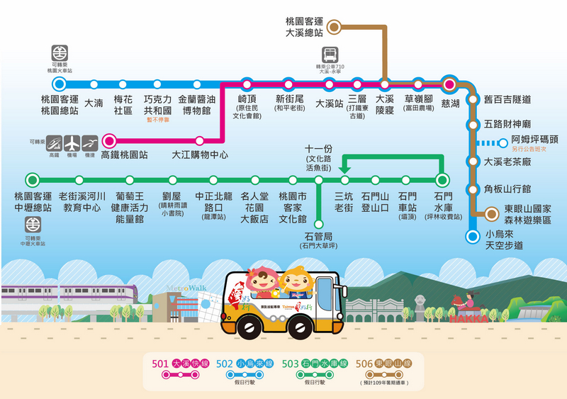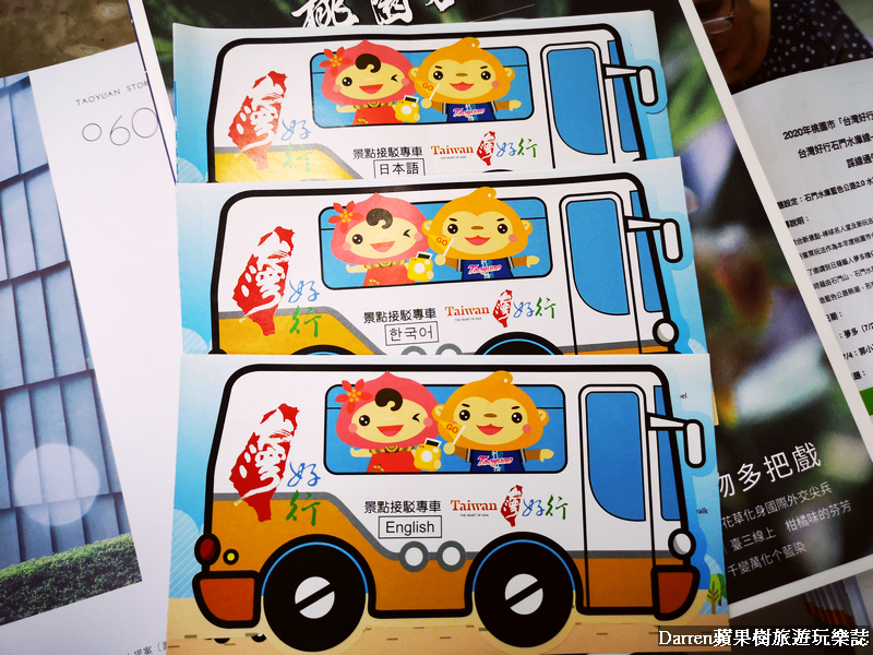 石門水庫線彩繪車有桃園市吉祥物ㄚ桃園哥大型公仔拍照打卡有Wifi服務