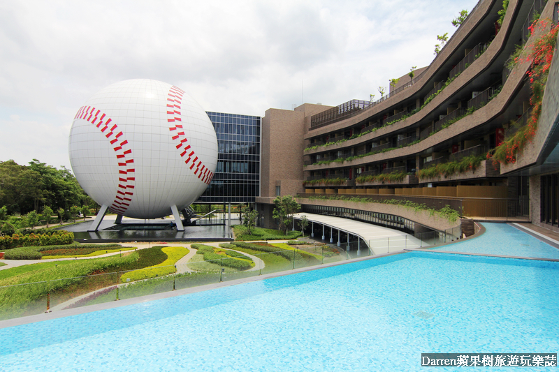 ▲名人堂花園大飯店游泳池,可以看到棒球外觀以及戶外花園廣場,這裡有戶外兒童戲水池、半室內溫水游泳池、戶外景觀SPA池等,非常推薦大家可以在入住同時,來到這裡享受在游泳賞景的樂趣
