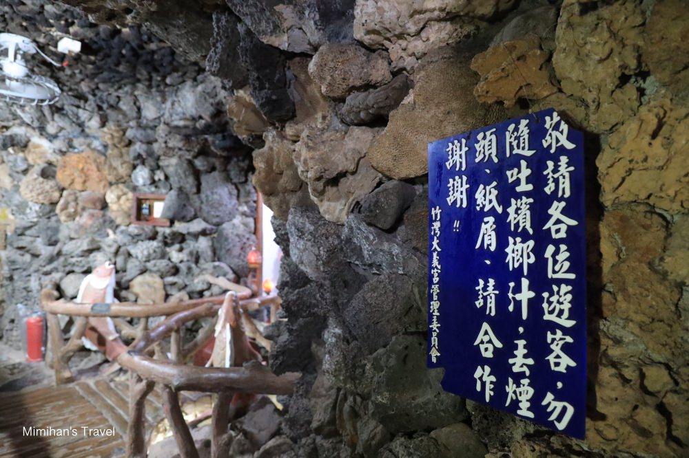 想要參觀竹灣大義宮珊瑚洞,參拜完正殿之後就往左邊走,可以看到往地下室的樓梯,不用門票可以自由參觀,當然也可以隨喜樂捐啦~