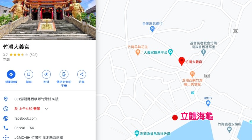 出發到澎湖自由行前就在網路上看到這隻立體造景的海龜,拍照看起來超像真的,趣味100%,立刻收進澎湖好玩景點名單裡,而且海龜附近的竹灣大義宮裡面有個色彩繽紛的珊瑚洞穴,也是很多人喜歡的澎湖IG打卡景點,有興趣的話可以一併順遊,來簡單分享~