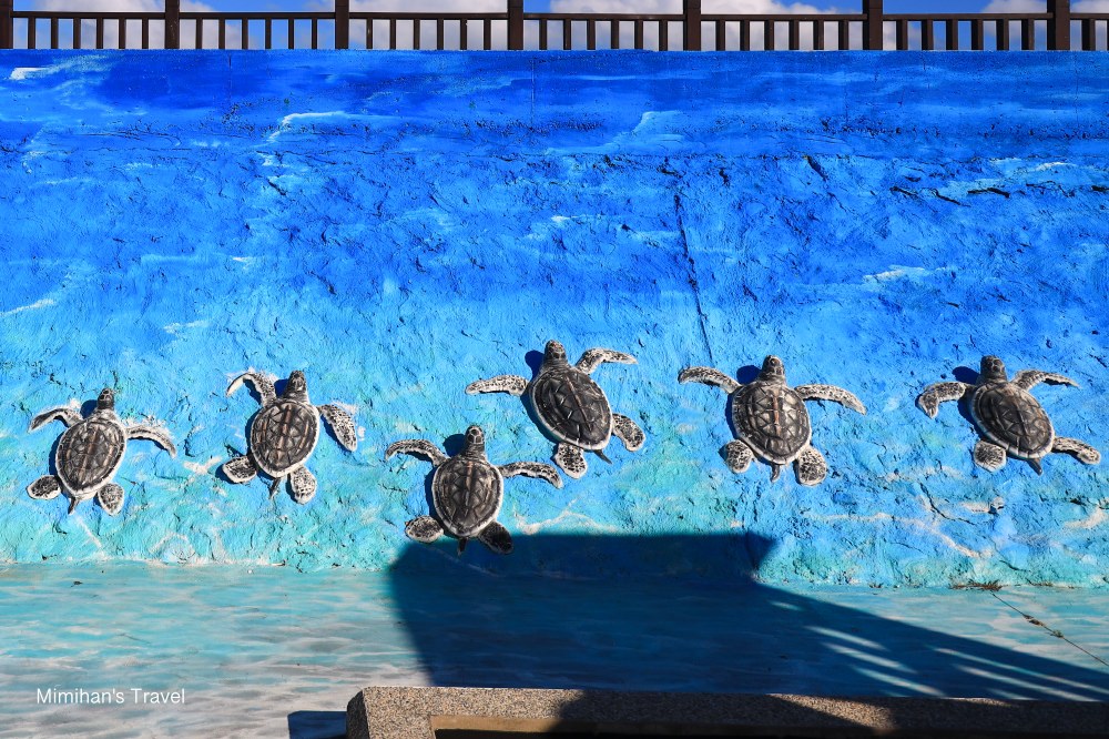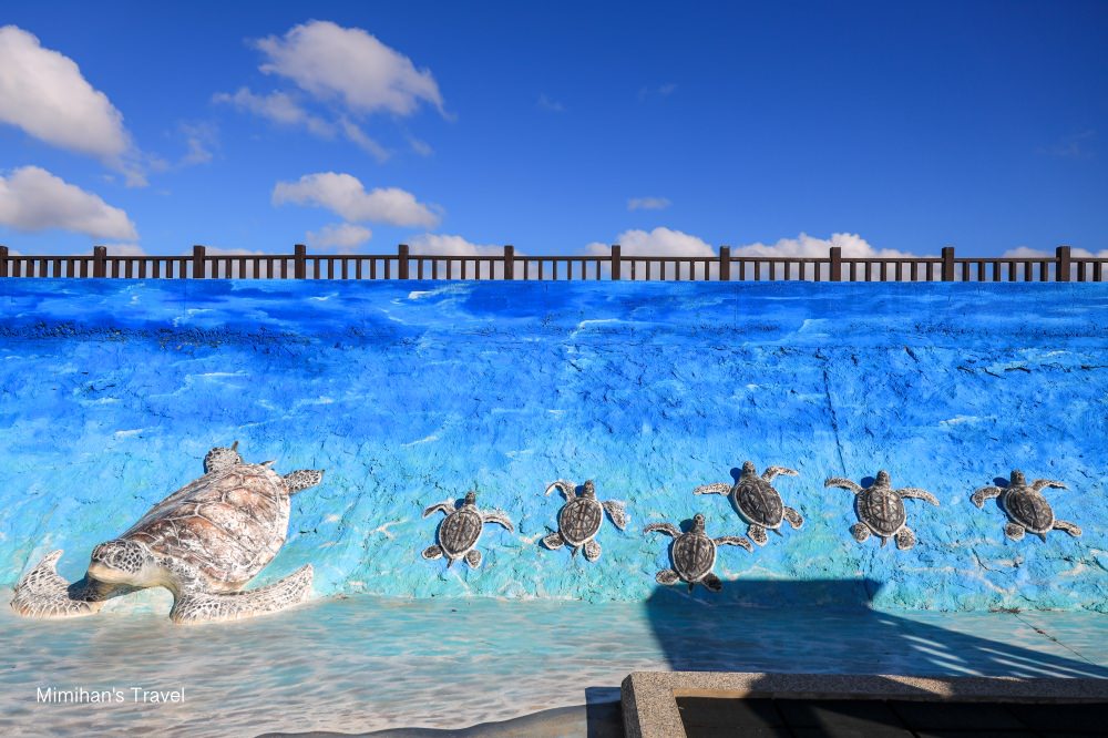 堤防上一隻大海龜和幾隻小海龜都是栩栩如生的立體造型,看起來超級生動,而且海浪的感覺也做得很真實,只能說網友們超厲害,藏這麼隱秘的景點都能被挖掘出來。