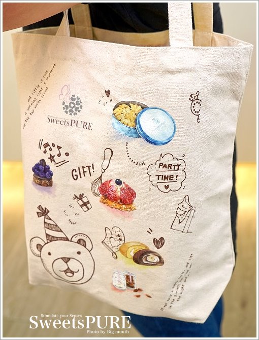 ▼只要單筆消費滿5000元,就送環保帆布袋一個(每人每單最多送兩個,不拆單不累計),上頭印有不少招牌甜點,看起來有微微文青風,背出去也很潮啊!
