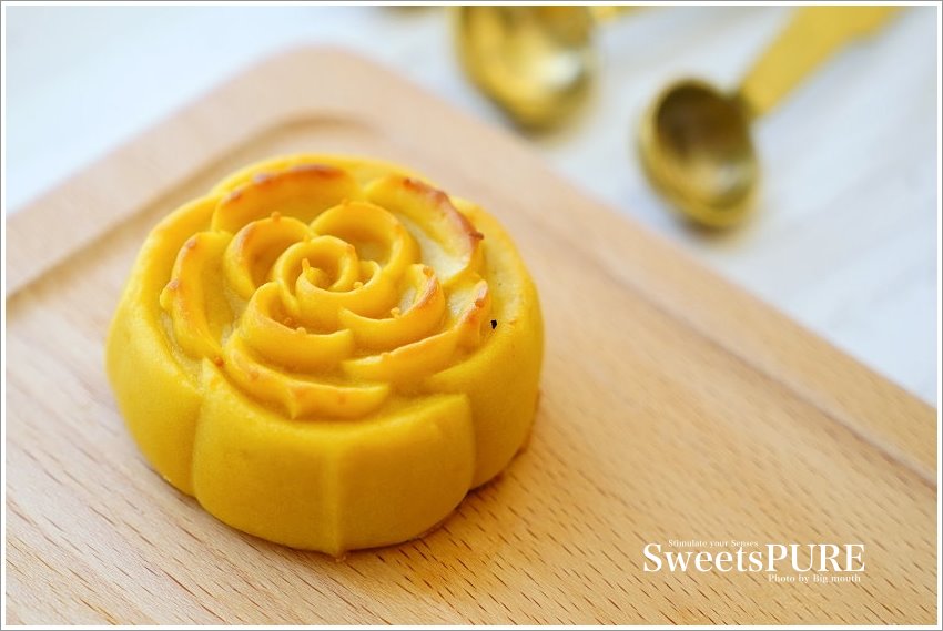 ▼玫瑰藏心(松露奶黃),外型是精美的玫瑰造型,皮餡比特別採用黃金比例,選用義大利松露搭配南洋風味的椰奶內餡,光看就讓人垂涎欲滴啊!