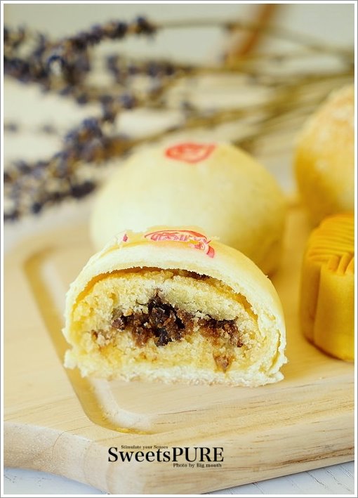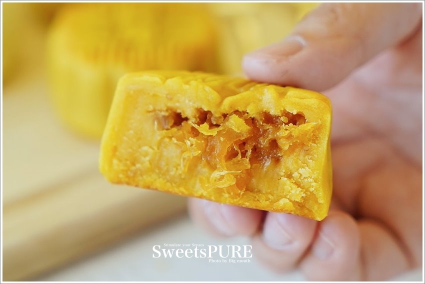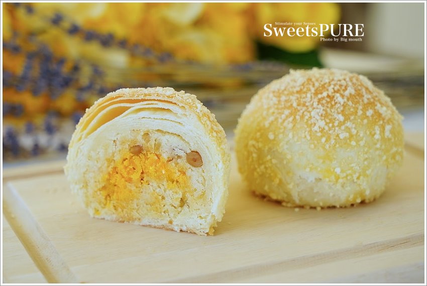 ▼這款森點酥(松子綠豆沙蛋黃)也是新品,採用蛋黃豆沙中拌入碎蛋,加入國外進口的松子,表面再撒上香濃的起司粉,看起來也非常精緻討喜!