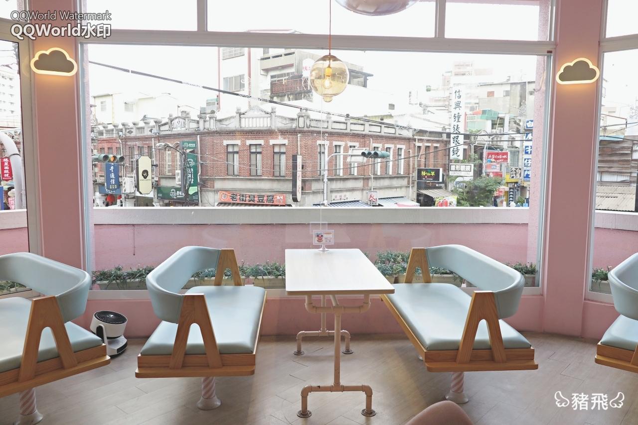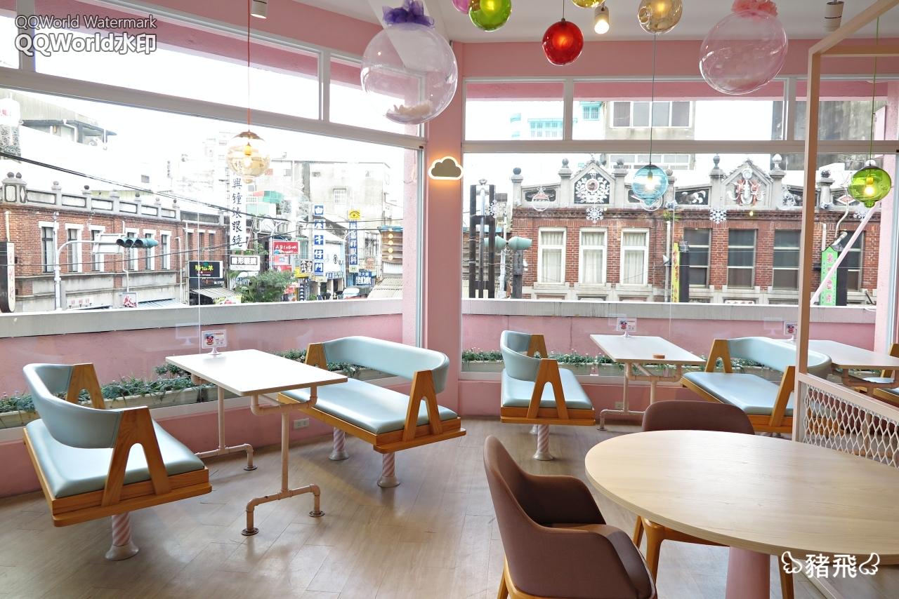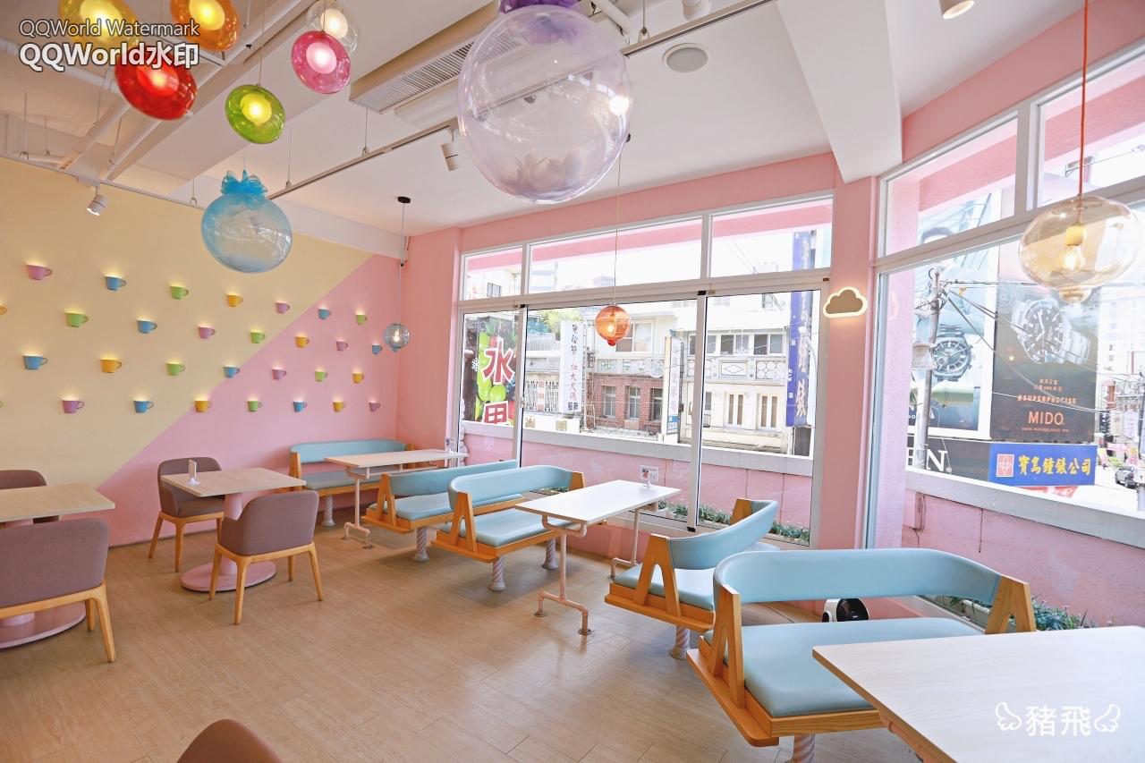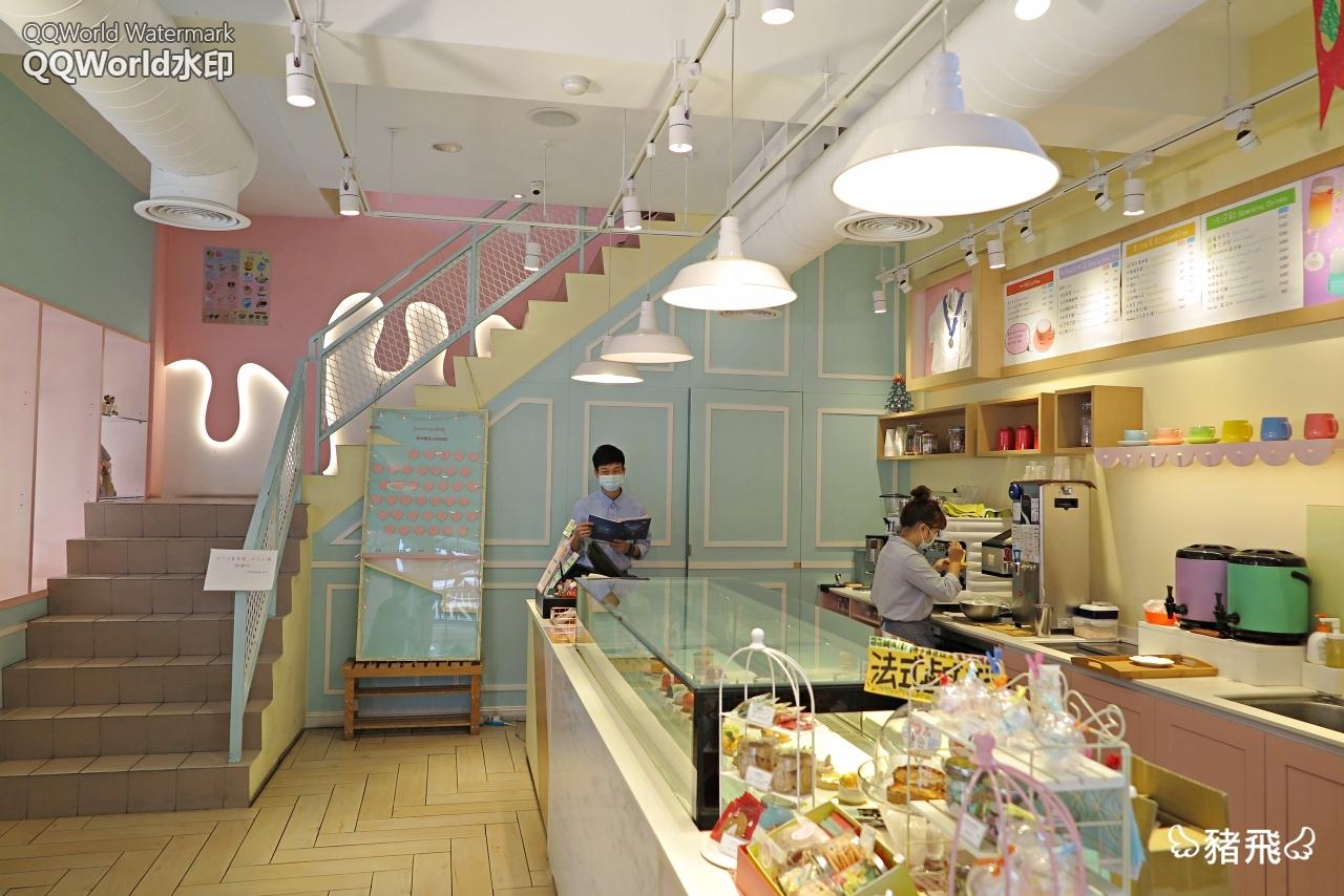 店內一樓用粉藍色、粉紅色打造成溫柔的空間,一樓是挑選蛋糕的地方,可以點完後到二樓享用。