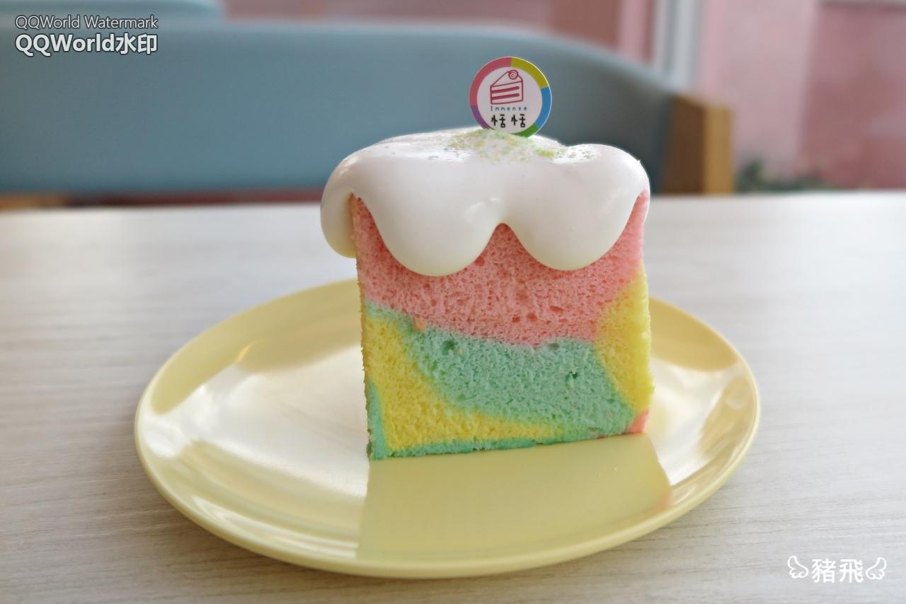 撞色系的彩色戚風蛋糕,沒有太過甜膩的內餡或是整塊奶油,最上層是特調清爽奶霜,雖然跟其他甜點相比顯得更加樸實,不過喜歡簡單風味的話會對這個印象深刻。