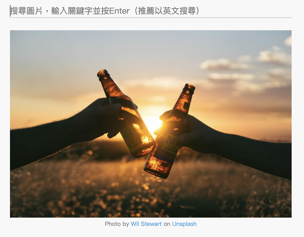 ▲如果自己沒有合適的配圖,可以從 Unsplash 圖庫中搜尋適合的配圖,推薦使用英文搜尋可以找到比較多合適的照片。
