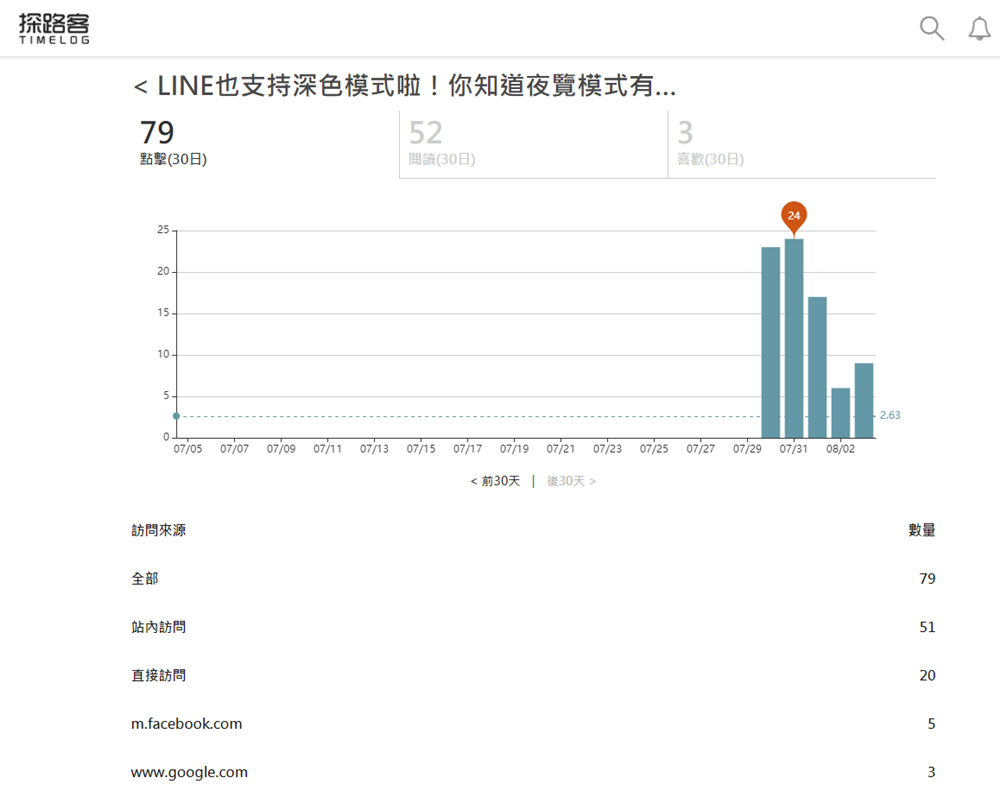 ▲點選單篇文章可以詳細查看單篇文章的流量來源。