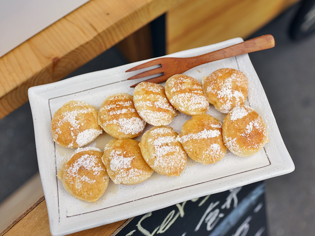Poffertjes 是荷蘭常見的傳統甜食,之所以稱作荷蘭小鬆餅是因為它很像迷你版的美式鬆餅,本身不會加任何餡料,一般會淋上巧克力醬、楓糖,或是搭配水果之類的,大小剛好一口一個!