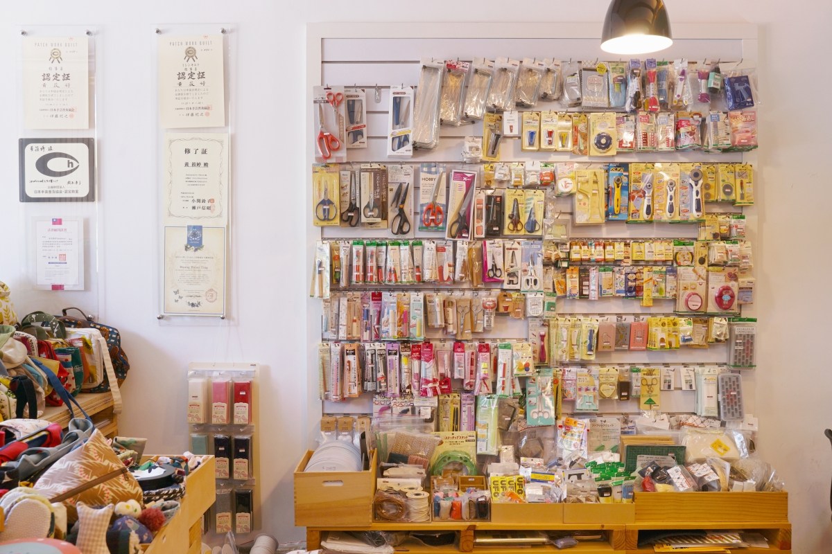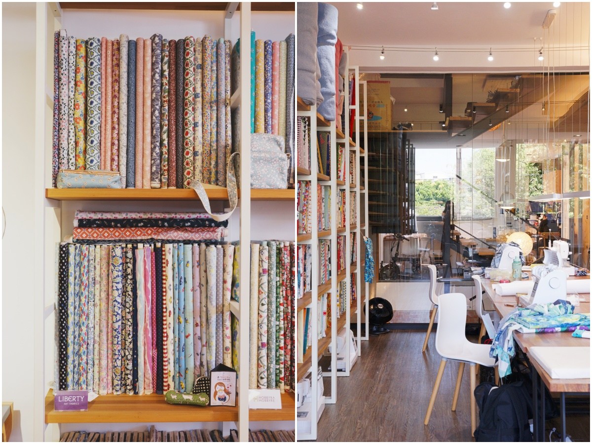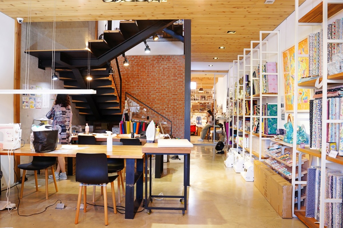 室內以木色與白色搭配設計,清新溫暖,而繽紛多樣的花布,便是整個空間最美的存在,不愧是最美的手作空間。