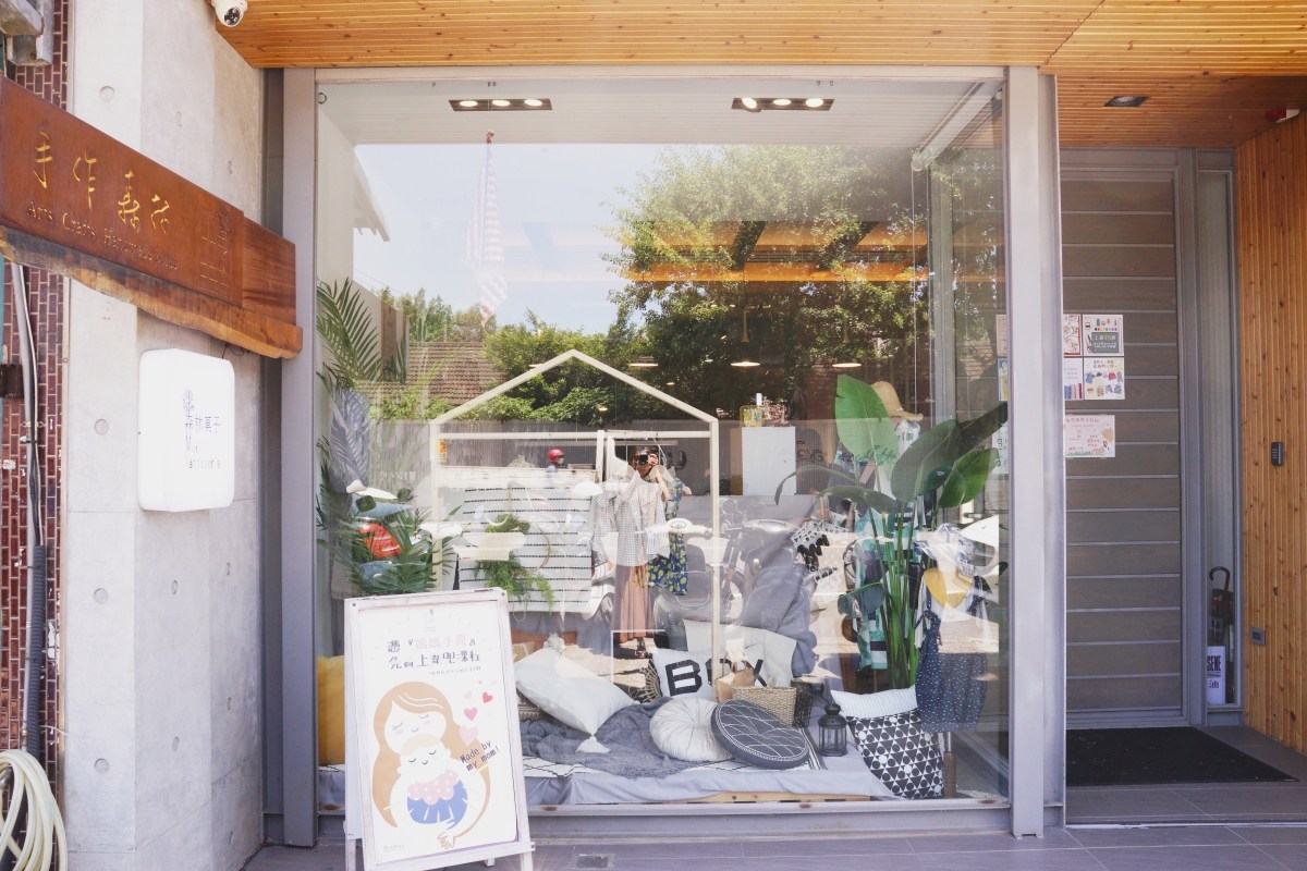 手作森林位在新竹市延平路一段,旁邊就是公有停車場,停車方便。外觀採清水模工法,搭配落地窗,讓光線透入室內,使得原本長型設計光線不佳的老宅,整個明亮起來。
