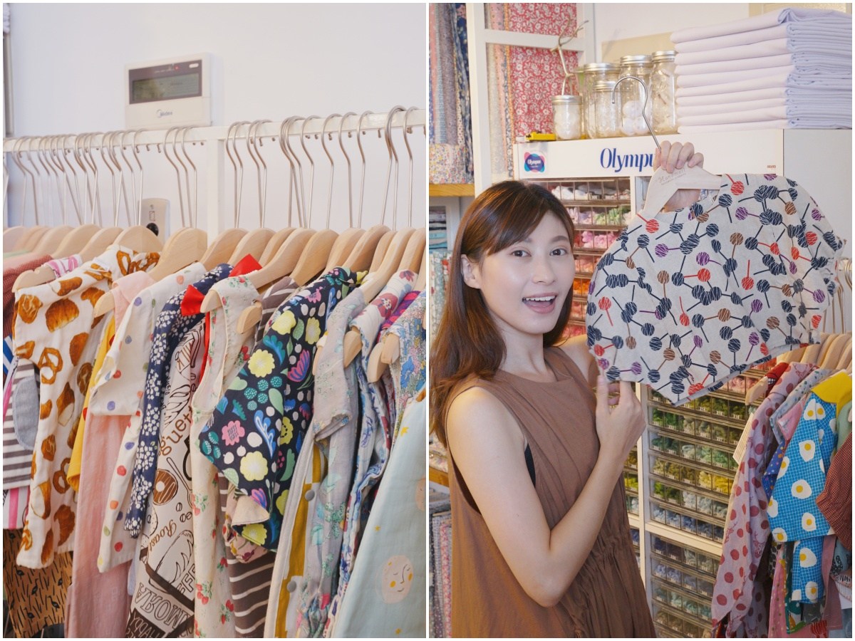滿屋子裡都是精緻的作品,從孩子的衣服、浴衣、圍兜、帽子,大人的衣服、包包、遮陽帽、手帕都能製作,也有專業的拼布作品與課程,提供給追求更專業的朋友參考。