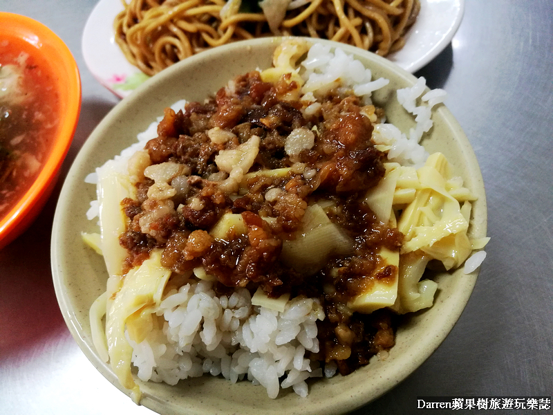 肉燥飯小碗25元,滿滿的肉燥還有筍絲,鹹香調味不會太重,心想好險是點小碗的,不然加上炒麵的份量怎麼吃得完,而且才25元真得有夠佛心!!