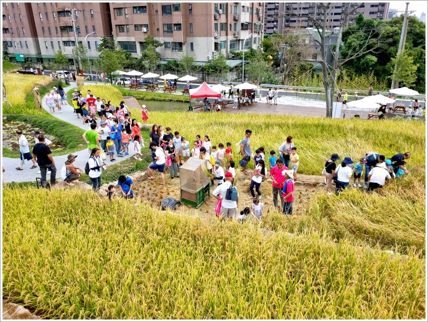 ▼滿滿金黃稻浪穿梭在都市叢林中,感覺別有一番風味,也吸引不少朋友漫步其中!