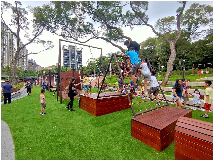 ▼登愣!最厲害的就是這個啦~~全國第一座壯齡鋼軌滑索,連大人也可以安心乘坐,公園不再只是小朋友玩樂的專利啦!不過這個設施人比較多,需要稍微排一下隊,但也不至於到太多人,大家可以放心!