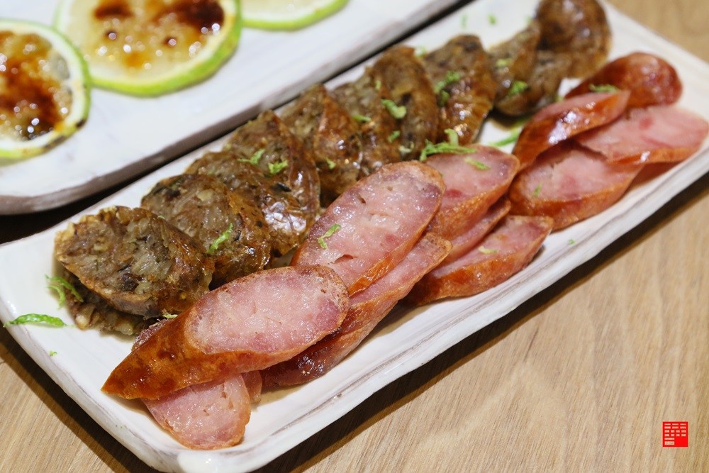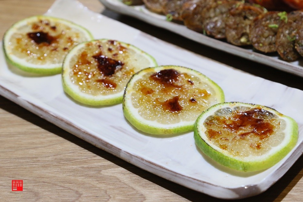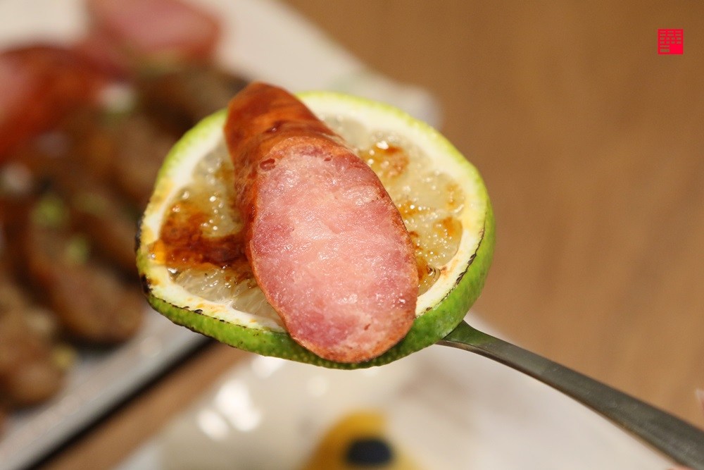 檸檬米香香非常特別的菜色,包括海鮮香腸1條、特色米腸1條跟炙燒檸檬片1盤,可搭配豆花飲品三選一(檸檬愛玉、檸檬豆花、檸檬咖啡三選一)。飛魚卵香腸搭配現刨的檸檬皮,有著坊間沒有的酸鹹香氣;糯米腸同樣加入現刨的檸檬皮,且額外加入十穀米,口感也顯得更加特別,檸檬薄片撒上焦糖後炙燒,頗有義大利甜點的風情。比較特別且推薦的吃法,是把檸檬薄片搭配香腸一口咬下,品味檸檬果肉的酸,檸檬果皮的苦,焦糖的香脆,以及香腸的嚼勁口感。
