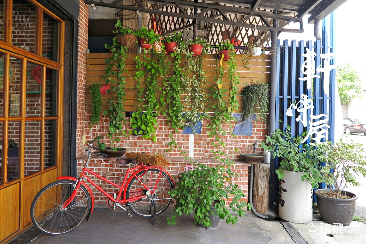 以充滿溫暖質感的木桌椅打造空間,桌腳是用阿嬤年代的裁縫車製作,在這個空間融入了復古元素,不只舒適也很適合拍照。地板磁磚以暖色系復古花紋妝點,往上延伸大面積紅磚牆搭配白色窗框,保留了老屋本身的老味道,也融入文青風格。