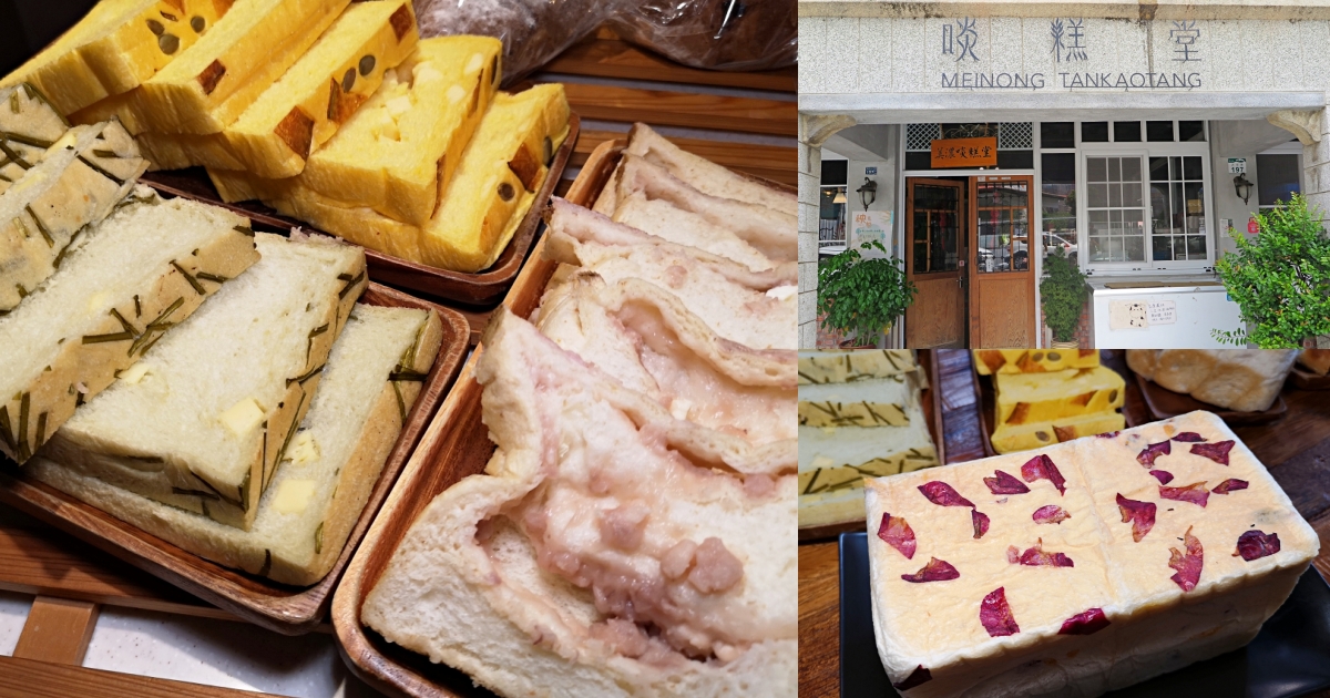 在高雄有個非常適合放慢腳步旅行的小鎮-美濃,風景優美、步調緩慢舒適,可以感受到這裡有很濃厚的客家風情,在地人推薦豬飛一定要到這家人氣爆棚的吐司專賣店「啖糕堂」,就在美濃永安老街上,由一棟日據時代的老屋改造,不只充滿日式文化,販售的產品也很厲害喔,尤其獨家研發的水蓮吐司、芋頭乳酪吐司、南瓜起司吐司、橙蜜香番茄吐司、玫瑰奶酥吐司,搶手程度不輸給蔡依林演唱會門票,才出爐就秒殺!