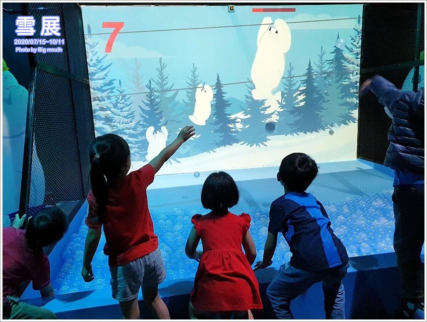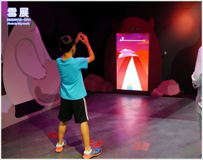 ▼要出來之前還依依不捨跟雪景再合照一張,不過還有另一區親子互動區也非常有趣,趕快來去挑戰吧!不過因為我們是利用等小朋友外套的空檔先跑去互動區玩,然後才進低溫區,所以沒把雪鞋換掉,大家記得雪鞋不能穿入互動區,因為這裡會直接連通到出口唷!