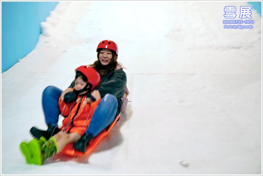 ▼這一區可以玩的有幼幼滑雪盤、無輪雪地滑雪車等,滑行在13度的滑道上,享受一路向下的逆風感與暢快感!口咩跟小口愛坐的是滑雪板,可以親子共乘也可以單人玩耍,速度真的很快~~玩起來很過癮!