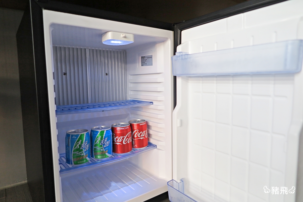 迷你無聲冰箱內放置了飲料,剛好炎熱的夏天一進房間就可以盡情飲用啦。