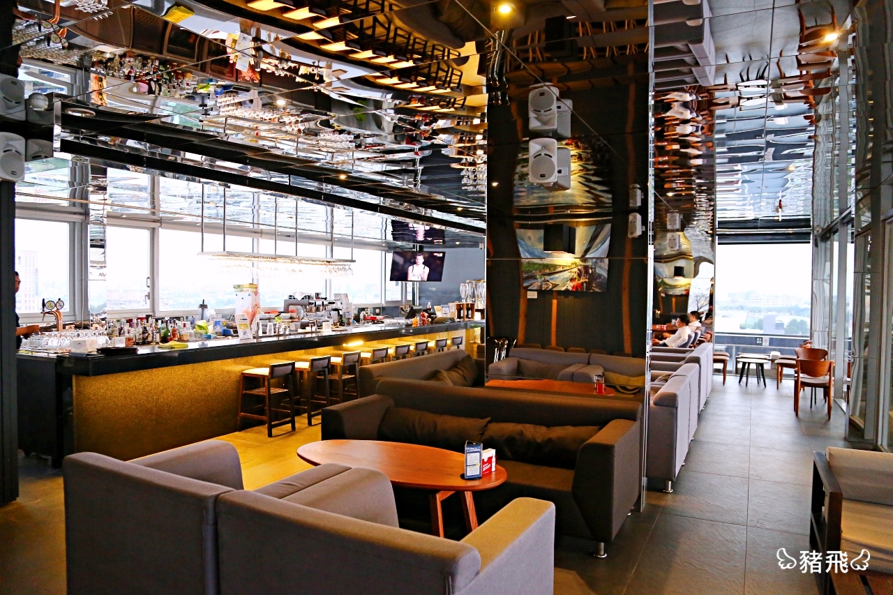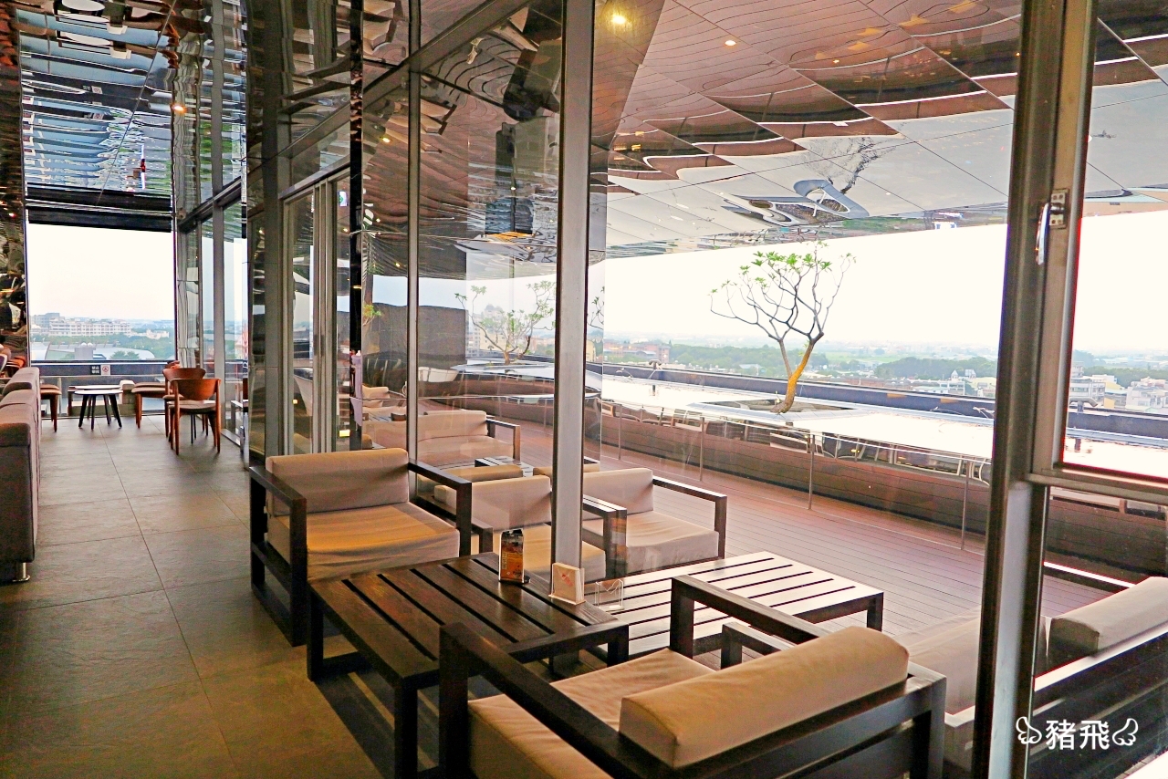 室內空間可以欣賞270度環繞風景,在這裡喝杯咖啡或是調酒是一大享受!酒吧是嘉義市最高樓的高空酒吧,在今年日環蝕的時候這裡擠滿了人,就是要一睹近距離的日環蝕美景。除了房客也開放給外客入場,加上環境時尚寬敞,很多人會特地包場辦生日趴。