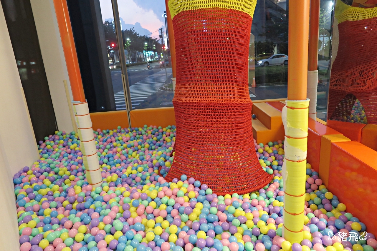 ▲也是兩層樓高的彩色橋是用來耗費小朋友體力的祕密武器。底下彩色球池簡直是全場小孩都瘋狂的區域,連我都想躺在裡面了。