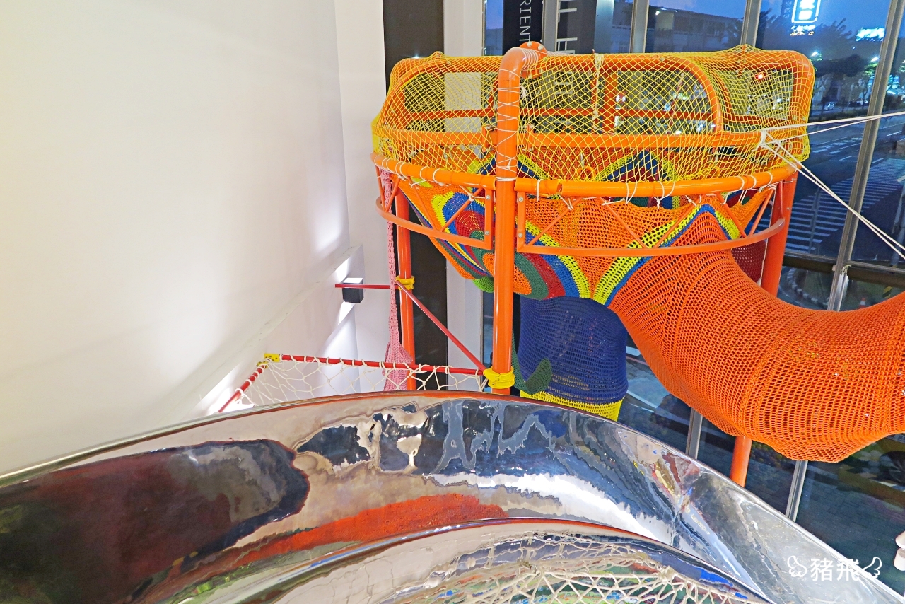 耗資400萬打造一體成形的不鏽鋼巨型溜滑梯,在網路上討論度很高,也是飯店一大賣點。從2樓溜下超刺激的!為了各位大朋友小朋友的安全,周圍更用軟墊包圍避免受傷。