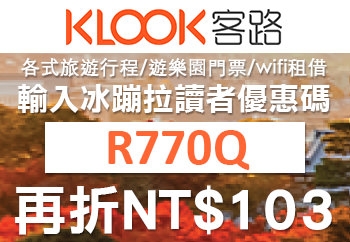 冰蹦拉讀者新朋友KLOOK優惠碼