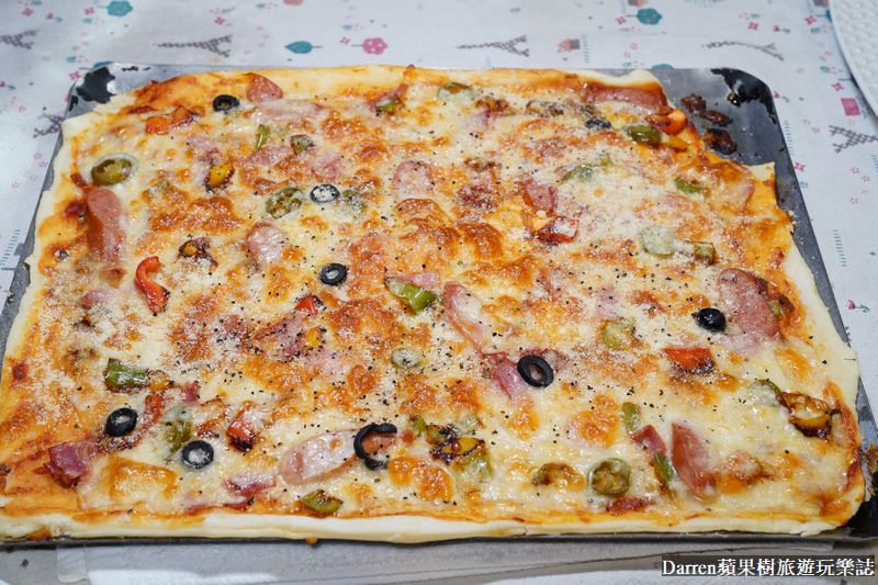 ▲方形海鮮披薩份量也不小,現做披薩屬於微脆口的薄餅皮,海鮮加上番茄的酸度以及起司香氣,同行友人都很喜歡
