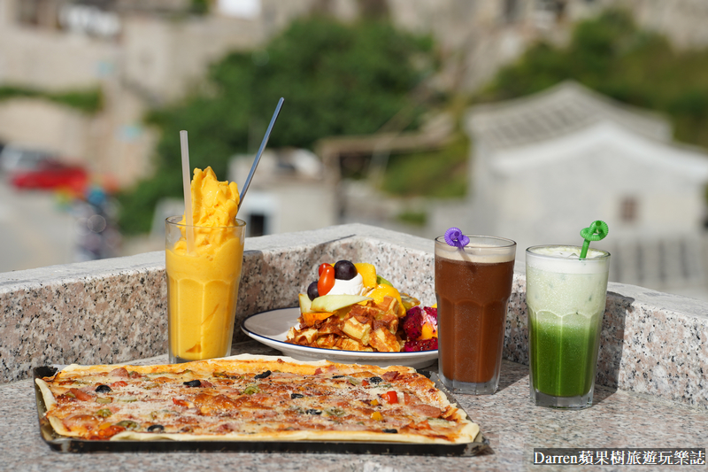 馬祖芹壁美食優良餐廳家適咖啡民宿菜單必點家適咖啡鬆餅披薩坐在二樓室外空間好悠閒
